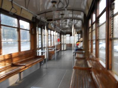 アトラクションのようなかわいいトラム。中は木でレトロな雰囲気。