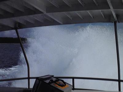 船は時速50km~65kmで航行。結構速い!白い波しぶきが上がる。