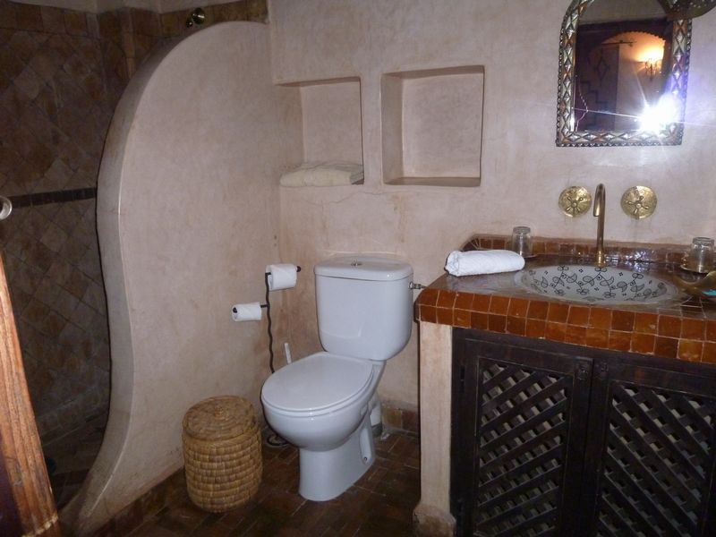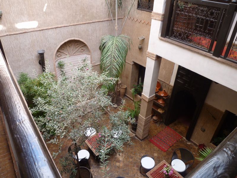 Booking.comでクチコミ評価が高かったリヤドです。噴水や木々のある中庭を取り囲むように部屋が配置されているモロッコ独特の宿泊施設ですが、部屋は狭く薄暗く、正直なところ、同じ金額を出すならば普通のホテルの方がいいと感じました。リヤドとはこんなもんだといわれればそれまでですが・・・。ちょっと、期待感が大きすぎたのかもしれません。