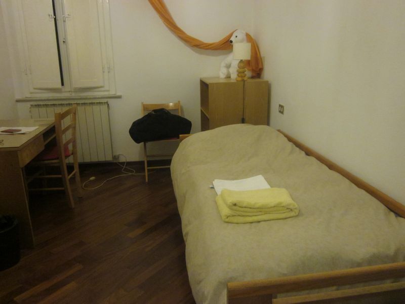 ローマ・テルミニ駅に夜遅く到着、翌日早朝出発とあって、寝れればいいという宿を探して見つけたのがココです。Booking.comで予約しました。6人1部屋のドミトリーで1泊19.89ユーロ。1階にbarがあるので、夜遅くまで騒がしいですが、ドミトリーは上階なので、