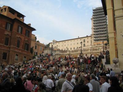 今は階段でジェラートを食べる事は禁止されている。汚れたりすると掃除が大変らしい。昔は何段以上は危険区域のためあまり上に行ってはいけない、と聞いた事があったが今はそんな事はない。ローマ市内のいたるところに警官がおり、治安は良くなったようだ。ただし、治安がよくなったと言っても引ったくりが多いので気をつけるには越したことがない。写真は昼2時ごろ。階段の付近は観光客でいっぱい。特に日本人観光客が多いのにはびっくり。イタリアに来てまでこんなに日本人を見るとは・・・日本人はお金を持っていると思われるのは当然かもしれない。