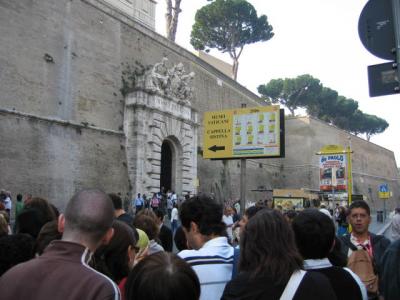 ヴァチカン博物館の名物とでもいうのでしょうか、予約をしていても長時間待たされる覚悟で行って下さい。ツアーで行きましたが、朝8時で長蛇の列!!みんな何時からきてるんだぁ~って感じですね。8:45からですので7時半ぐらいから並べばスムーズに入れるでしょう。ちなみに8時に並んで入れたのは3時間後でした(笑)また並んでいるとジプシーの親子がうろうろしています。引ったくりには充分気をつけて下さい。また当然のように割り込んでくる人もいます。現地ガイドさんがそこ!割り込んでるぞ!って注意してくれたり、ジプシー親子にはあっちいけ!!(たぶん)とイタリア語で言ったりしてました。並んでる時も外国ですのでご自分の持ち物はお気をつけ下さい。日本と同じ感覚にならないように・・・。それと、当たり前ですがトイレはありませんので、どうしてもトイレに行きたくなったら近くのバールに行って飲みたくもない飲み物をカウンターで頼んでトイレを借りて下さい。あ、トイレだけ借りる勇気のある方は何も頼まなくてもいいです。私の旦那は何も頼まずにトイレに行く勇気がないので、、、カプチーノ(1ユーロ)を頼んだそうです(笑)