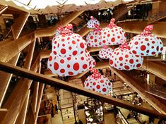 中央吹き抜け空間に草間彌生さんの作品が展示されていて