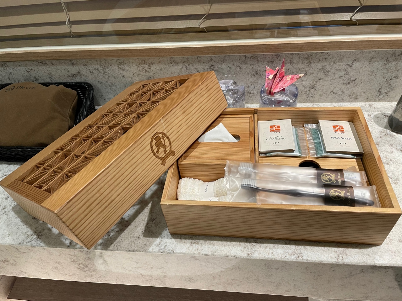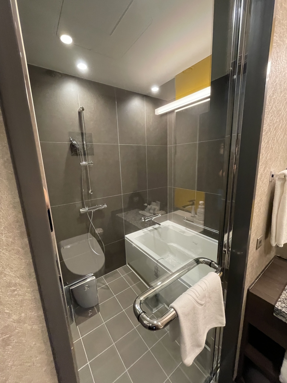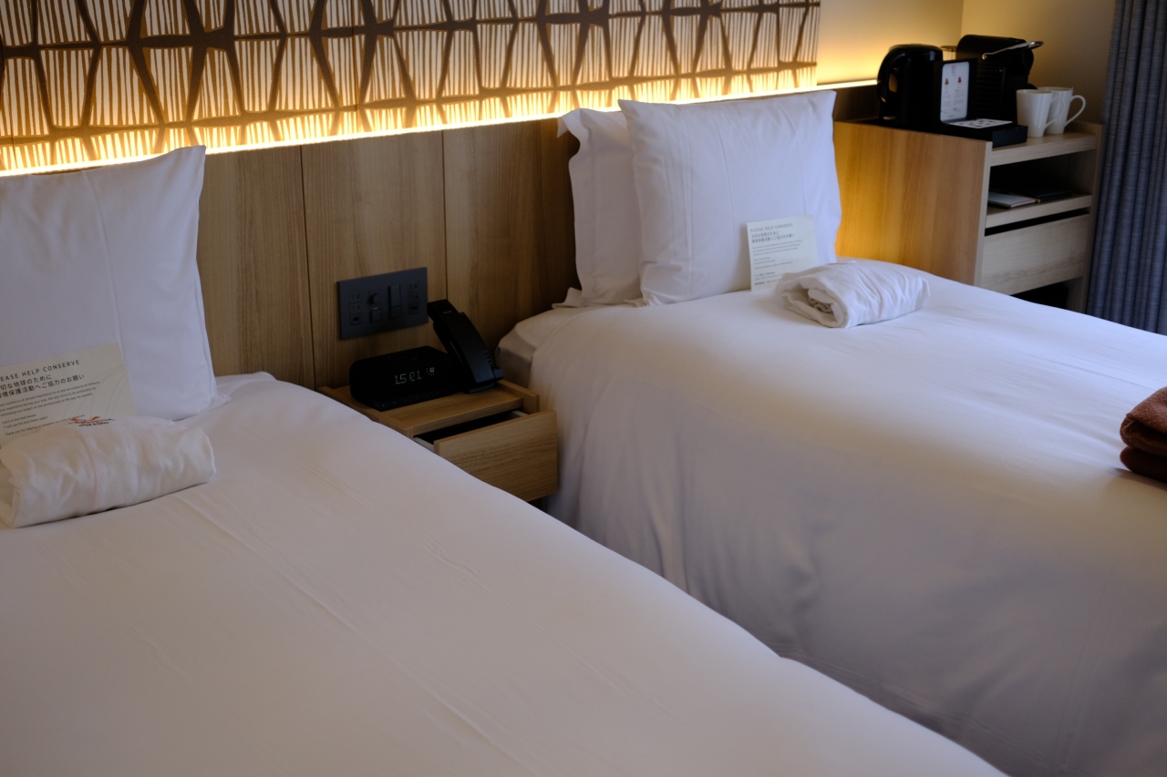 お部屋の前の廊下は吹き抜けになっているので、夜、外の車の音がうるさかったらどうしよう、、と思いましたが、そんなこともなく静かに休むことができました。