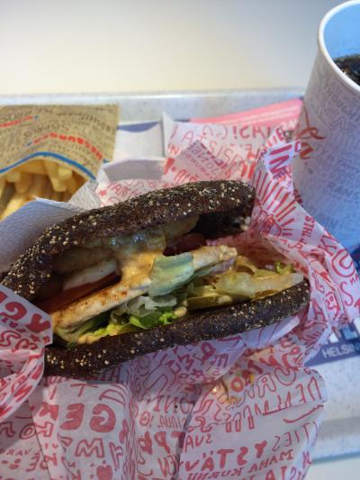 せっかくですので、フィンランドの黒いパン(ライ麦パン)のバーガーを食べてみる事をおススメします。