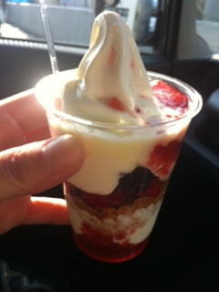ケーキショップと、カフェが併設されています。夏季限定で。しかもお持ち帰り限定のパフェがとてもおいしいです。イチゴパフェは、これでもかというくらいにイチゴソースがかかっていて、見た目よりボリュームがあるパフェです。夏しか食べられない特別感もいいですよ。