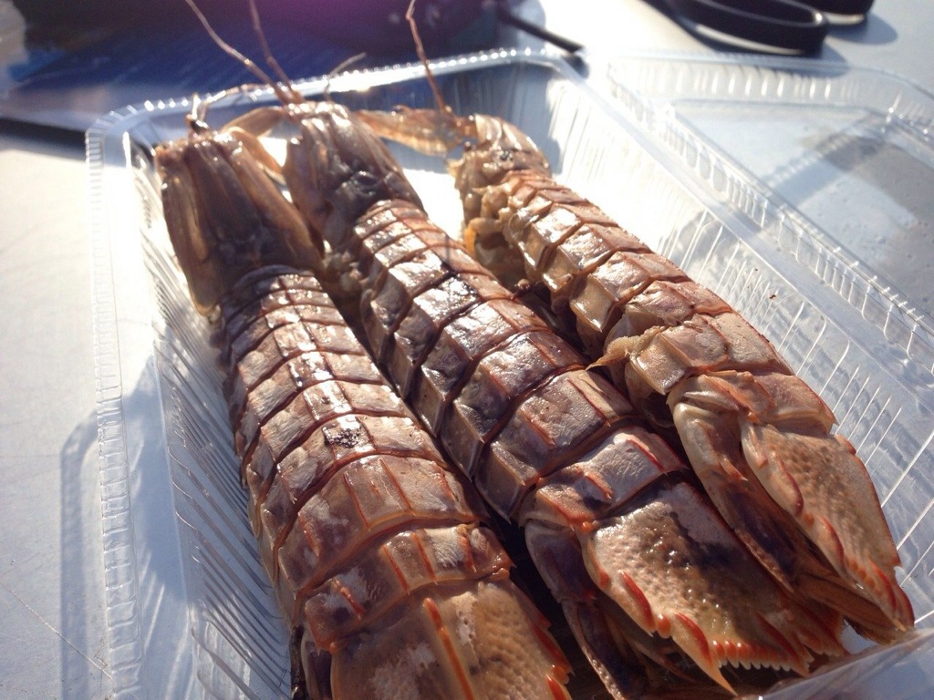 10時に始まるとのことで、9時に到着するように行きました。案の定、すでにたくさんの人が列を作って無料のしゃこ汁に並んでいました。会場内には、10時前からしゃこを売っている店があったので、そちらで持ち帰り用3袋と食べる分とを購入しました。ちなみに持ち帰りは500g約12本が1,500円、そこで食べる焼きしゃこは3本400円でした。しゃこ3匹入りのチゲも売ってましたね。そのほかにホタテの貝殻焼きを食べて(2個300円)アワビや、貝付きホタテ、しゃけとばを購入して帰路に着いたのは10時頃。札幌方面から会場へ向かう道路は大渋滞でした。