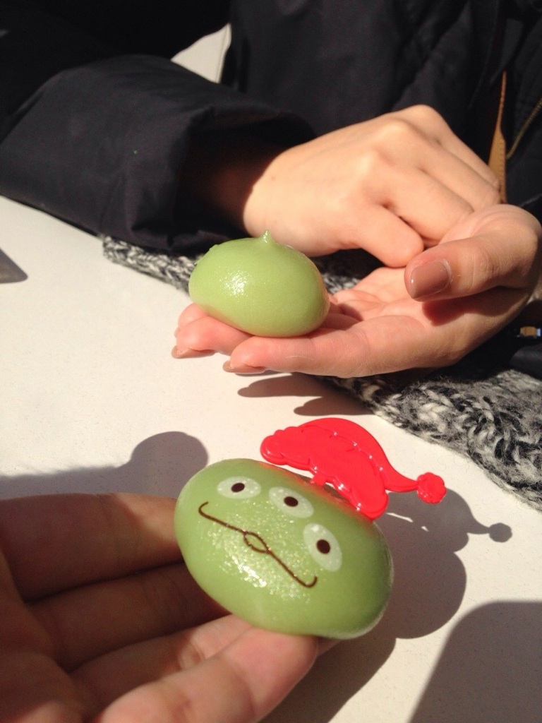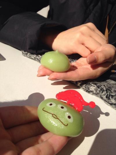 久しぶりに、大きくなった子供たちと行ってきました。とりあえず乗3大マウンテンは制覇したいと、開園1時間前から並び開園後はまず、ビックサンダーマウンテンのファストパスを取り、その足でクリッターカントリーのスプラッシュマウンテンへスタンバイ(即乗れました)、次はスペースマウンテン、これまた即乗車できました。あとは、ファストパスを取りながらお気に入りのアトラクションをすべて制覇。食べ物は、今まで食べたことのないものを食べようということで、まずはかわいいリトルグリーンメンのお団子。3個の中の餡はすべて違う味で、おいしかったですよ。