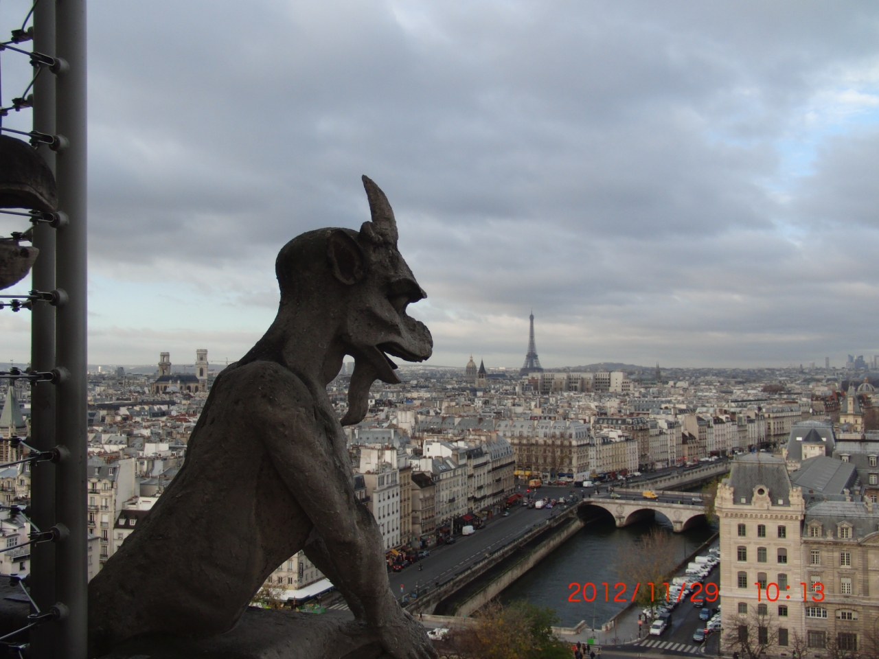 オペラ地区に宿泊していたので、朝歩いてシテ島目指しました。結構時間がかかりましたが、少し遠回りしていたようです。ですが、歩くことによりパリの街を肌で感じることができて、良かったと思います。ノートルダム寺院は、雨どいの先にある石造が楽しいですね。建物の側面から、塔に登れるのですがそこからはまじかでこの石造を見ることができます。歩いて上がるので疲れますが、パリの街を一望できるスポットですので、ぜひ登ってみてください。