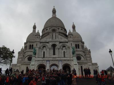 サクレクール寺院には、地下鉄を降りてから登山電車で上まで登って行きました。これを降りてからも、登りがあるので、足に自信ない人は、登山電車の利用をお奨めします。これには地下鉄の券で乗ることができます。私たちは10回分のカルネを購入しておきました。どこへ行くにも地下鉄が便利ですので、買っておくといいですよ。地下鉄では降りてからのぼりのエスカレーターで、スリに会いアイフォンをすられました。泣いても泣ききれない思い出です。特にここはスリが多いので、行くときは気を付けて。