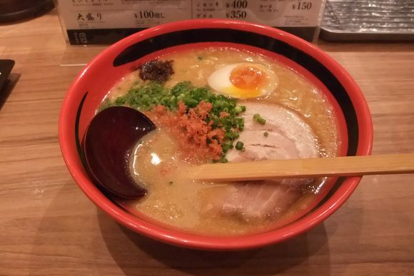 店の中はえびスープの香りがして食欲をそそります。選んだのはみそ味でえびととんこつのスープに太麺。スープがおいしかったです。えびの味がちょうどいい具合でみそ味だけどこってりした感じがなく飲みやすいです。おそらくえびそのままだとちょっとくせがありすぎだったかなと感じました。ただ、慣れると逆にはまるのかなとも思いました。
