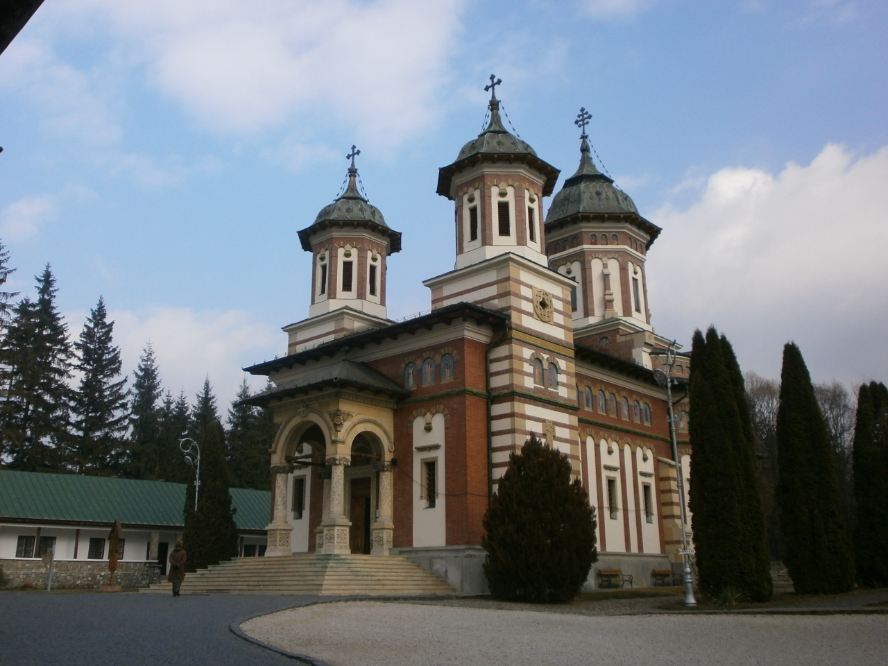 シナイア駅から坂道をくねくねと20分くらい上っていくと、木々に囲まれたシナイア僧院に到着します。