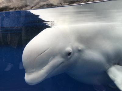シロイルカが間近で見られる水槽があったり、イルカショーも日に数回あり、二頭のイルカが芸を見せてくれました