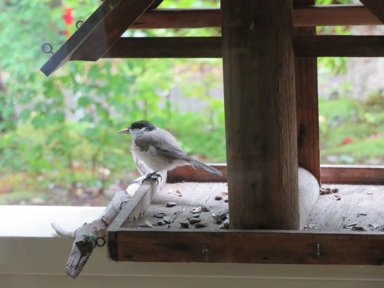 庭には小鳥やリスがエサを食べに来る餌台があり、餌を頬張る可愛らしい姿を
