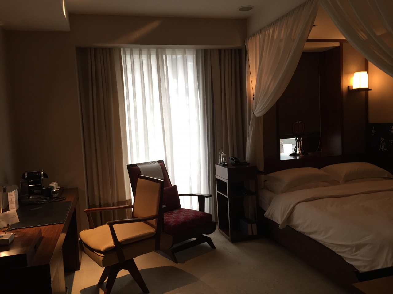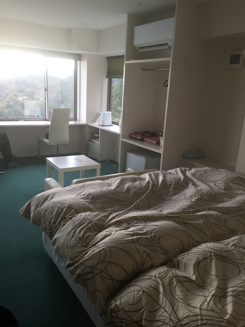 新館という結構高めの設定の部屋に宿泊したが、狭くて椅子が使いずらく、