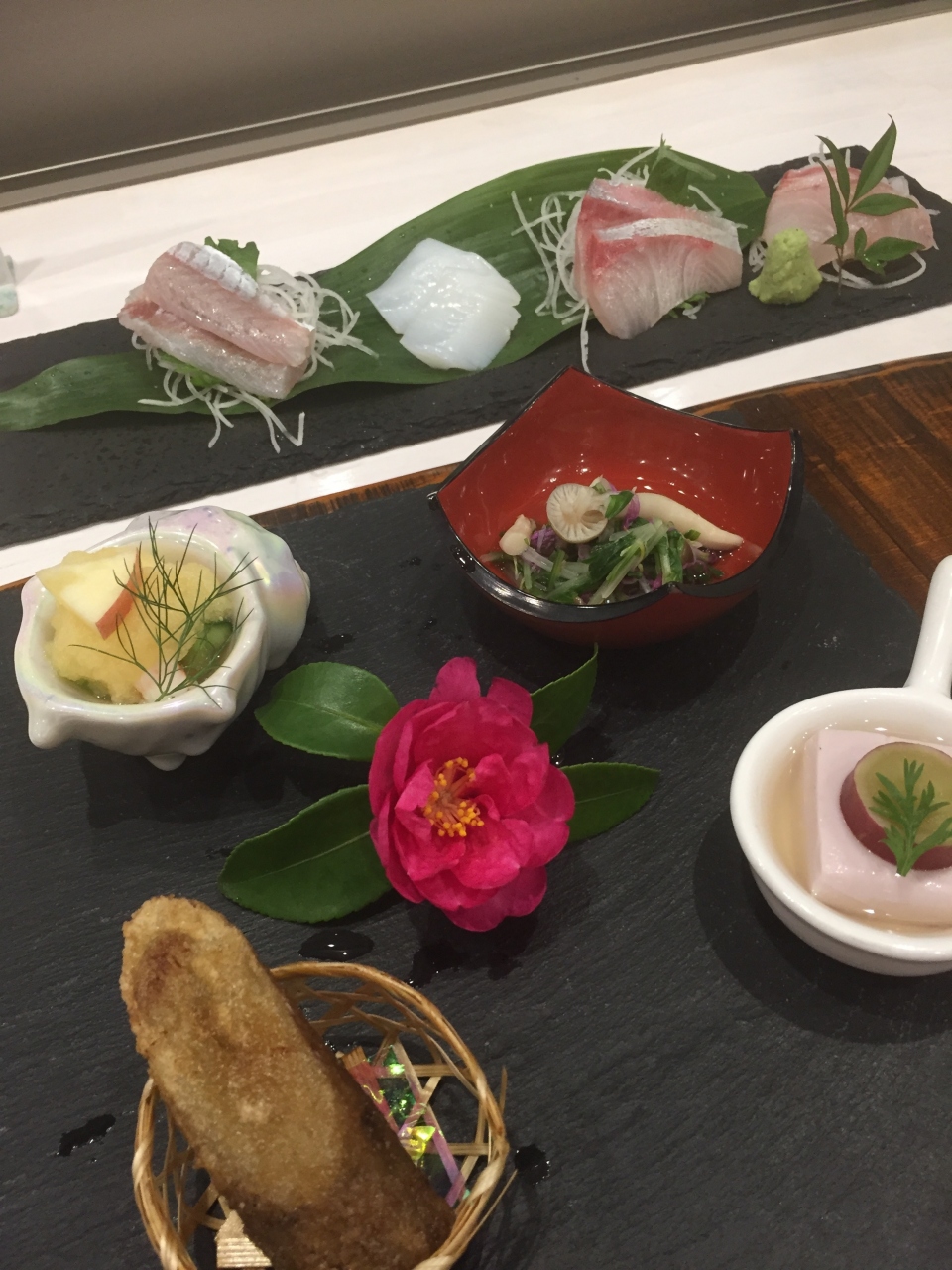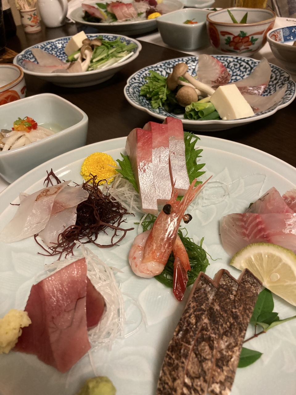夕食の刺身は聞いたことない地元の魚ばかりで脂が乗っていて