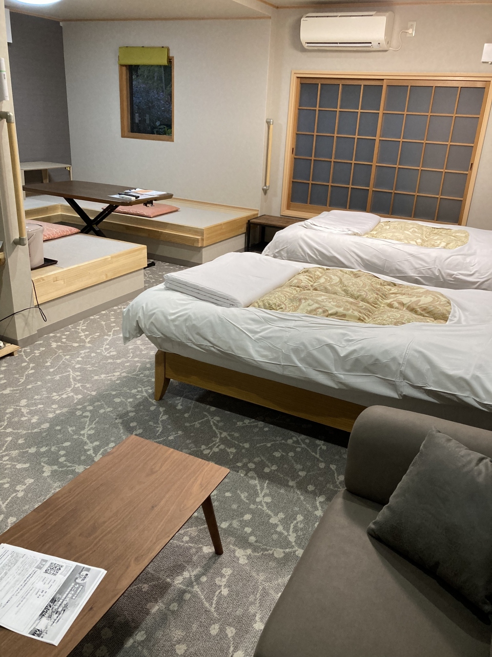 部屋はとても清潔で感染予防の観点から先に布団を敷いておきますとのことでした。
