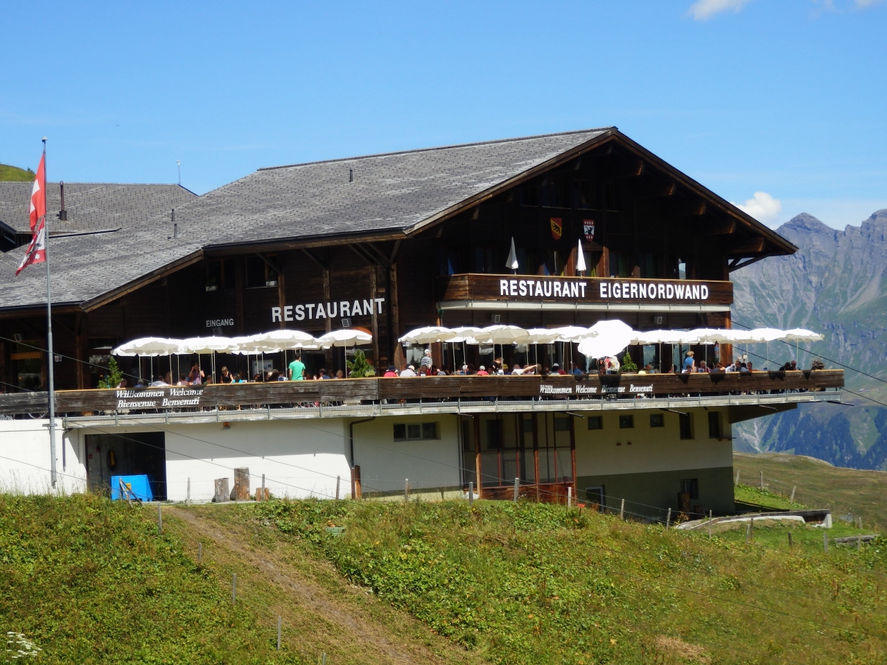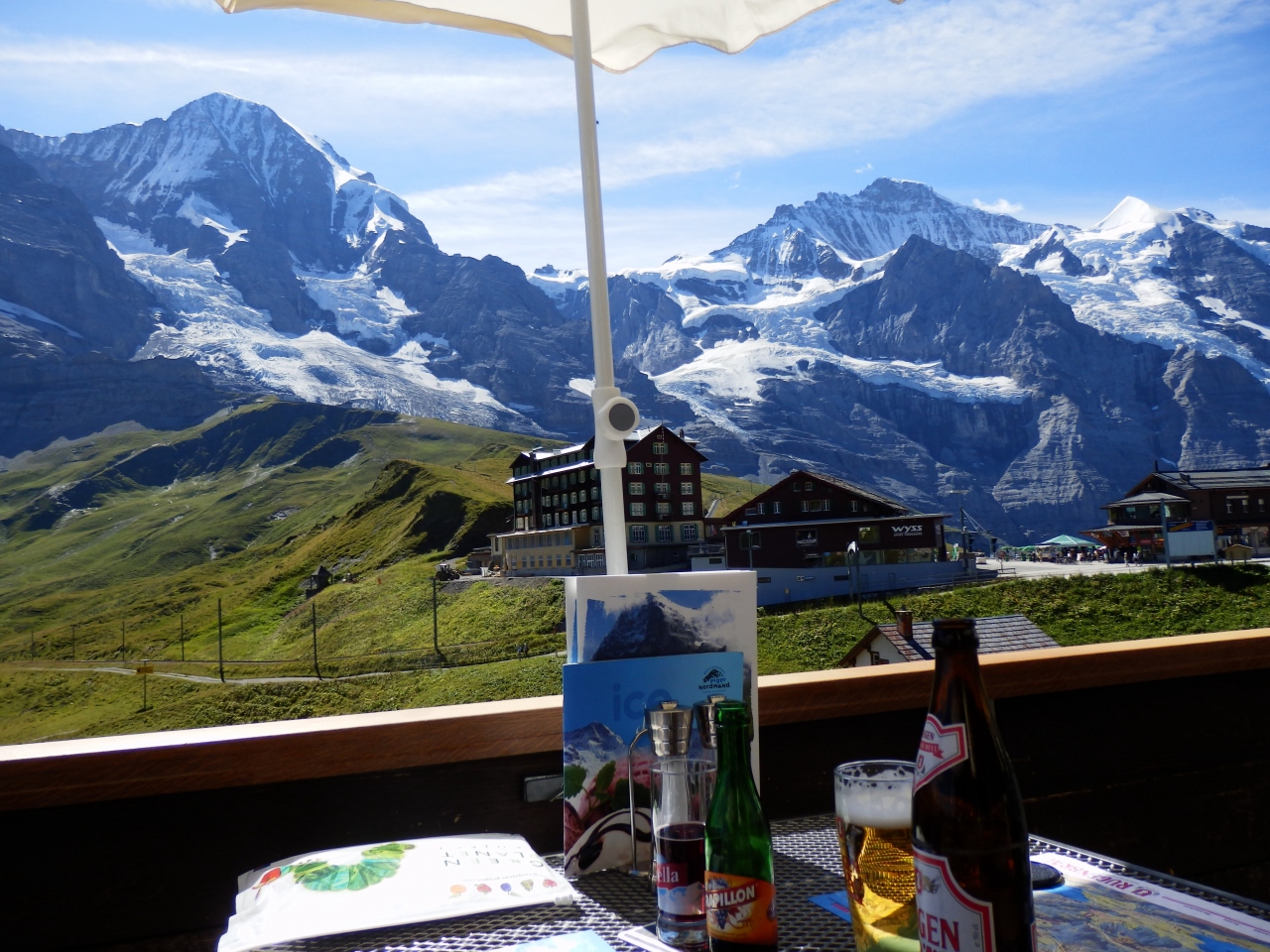 天気が良ければテラス席からユングフラウの山々や、遠くにグリンデルワルト