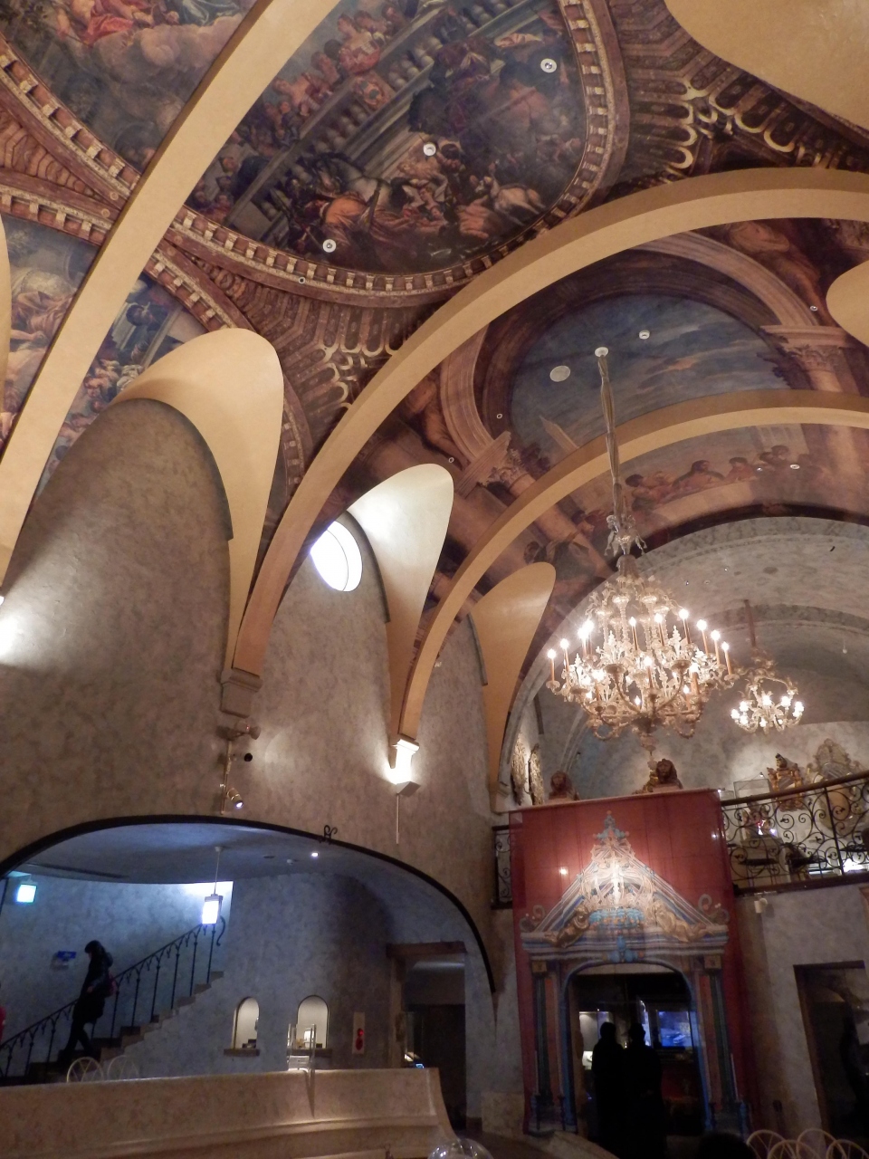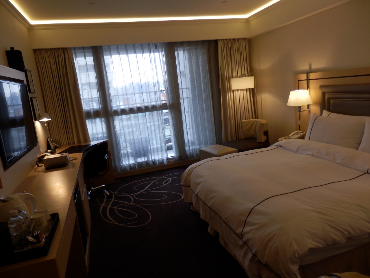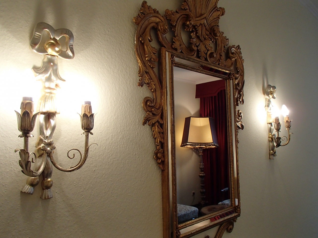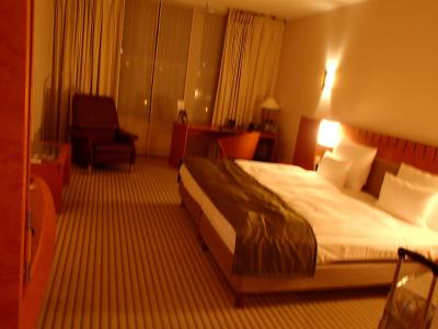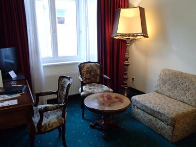 部屋はまあまあな広さでヨーロッパ調のイスや、赤いカーテンが印象的でした。