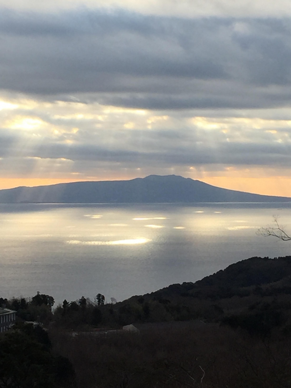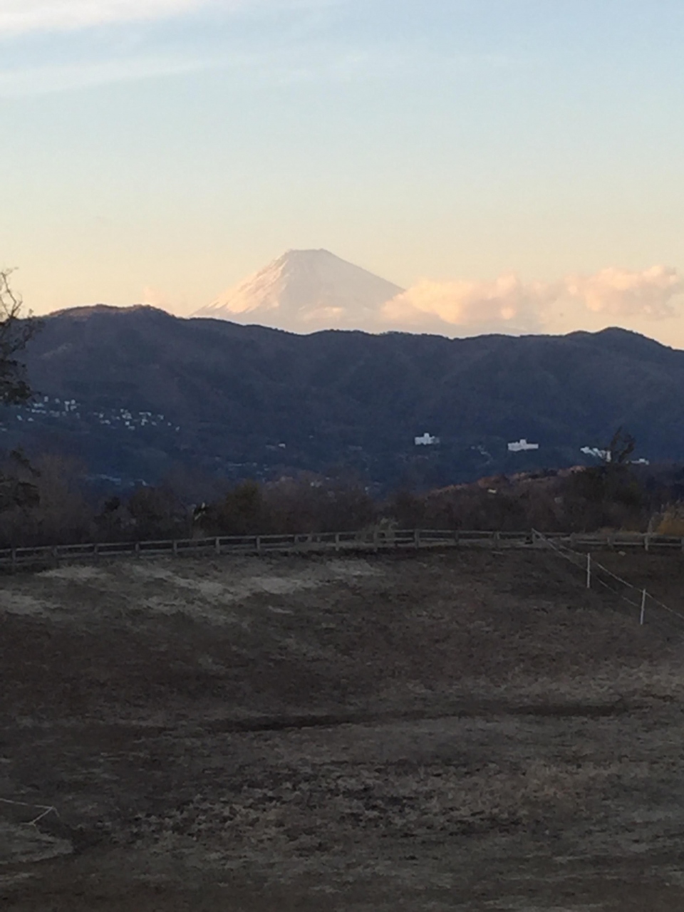 部屋から富士山が馬越しに綺麗に見え、逆側からは伊豆七島が見渡せた