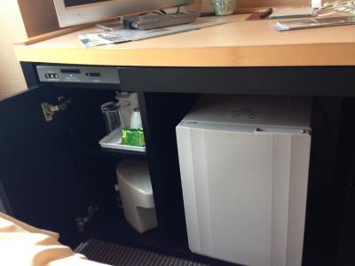 部屋はかなり狭いですが、小さな冷蔵庫やティーポット、
