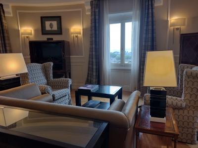 コロナ禍を利用してリニューアルしたそうです。朝ご飯は天窓のような屋根がガラス張りの最上階でのビュッフェスタイルです。天気が良ければそのまま屋上に出て、眼下に広がるボルゲーゼ公園を楽しみながら食べることもできます。お部屋はモダン・クラシック調で、ごてごてしておらず良かったです。