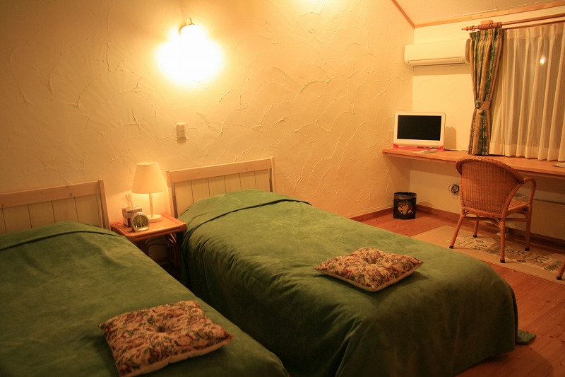 お部屋は普通で、いかにもペンションという感じですが、窓から富士山が見えるので旅行気分を味わえます。