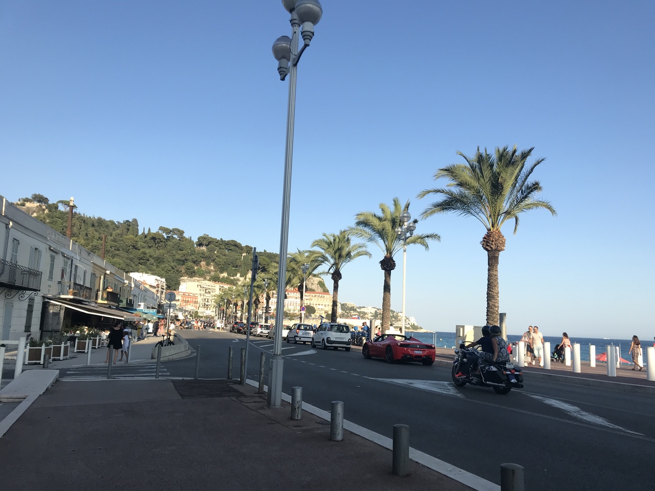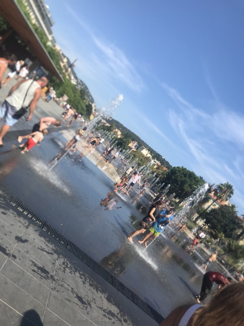 ニースの海が目の前です。ただなんの風通しも日よけもないので、暑さに気をつけてください。水飲み場はありますが、中々気づかない場所にあるので、水分補給は忘れずに。アクティビティの受付がある場所もあります。