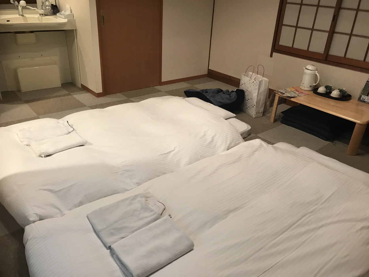 駅近でレンタカーもその通りにあるところを借りたのですごく便利でした。まだ新しめ?に感じましたが中は古い感じがして改装みたいな感じです。でも布団も綺麗でお風呂もちゃんとあって二人には十分な広さで良かったです。