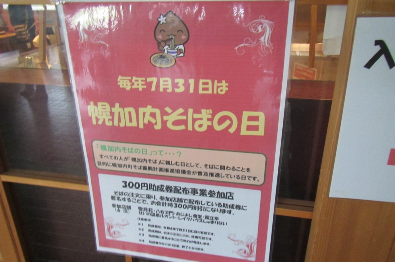 幌加内町が定める7月31日「そばの日」に各種蕎麦が¥300円引きになります。