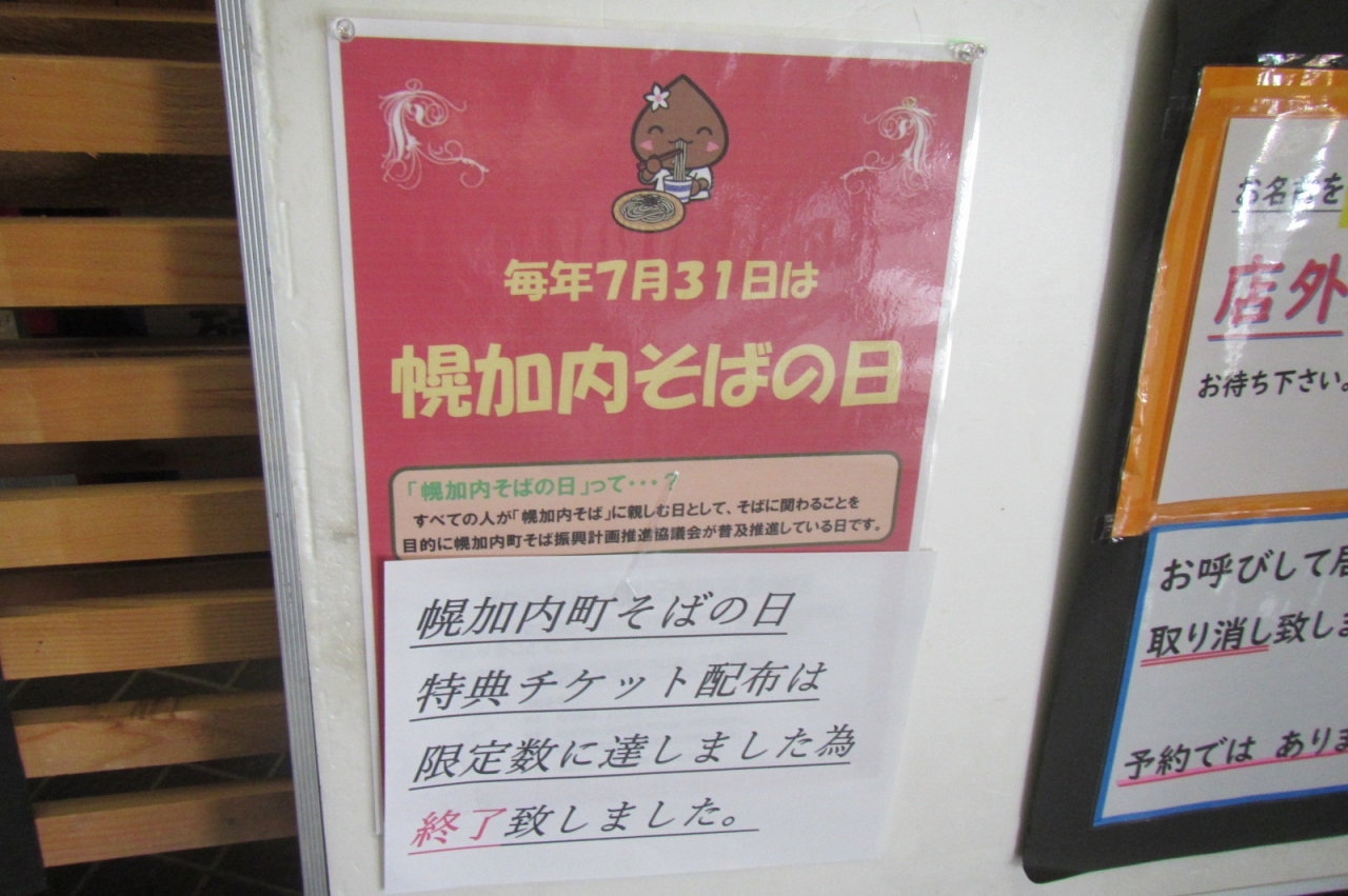 しかし、たたでさえ人気の幌加内蕎麦のため、当日はやや混雑し、割引も昼過ぎには予定数に達して終了。