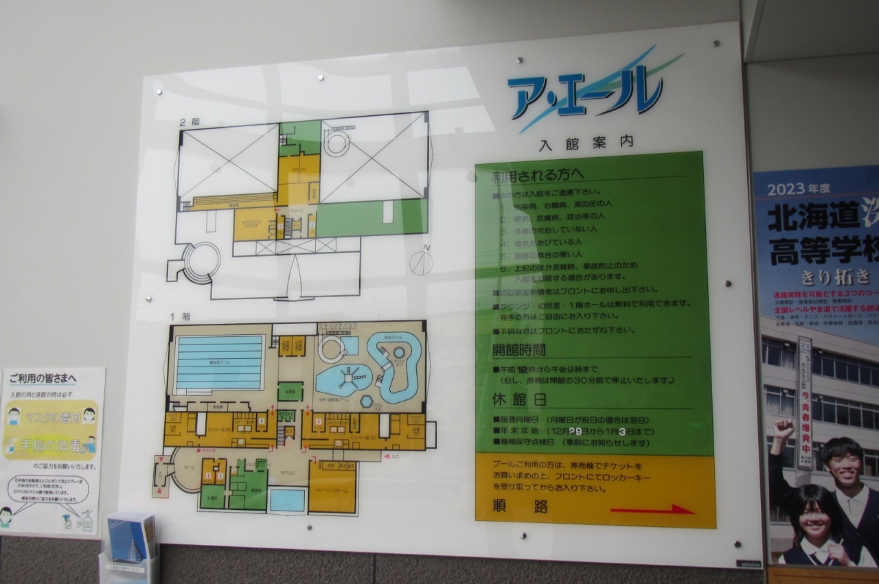 他の北海道内のプールではあまり見かけません(鵡川の四季の館は温泉を併設していますが。)。