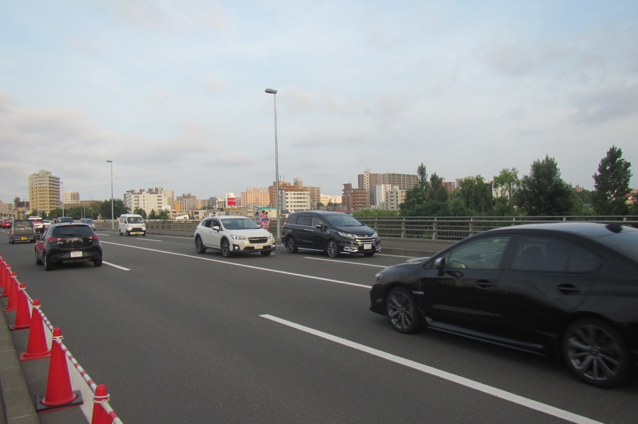 規制がかかる18時前でも夕方のラッシュアワーの時間帯だったため、車は渋滞していて、南七条大橋をなかなか通り抜けできない状態でした。- 旅行時期