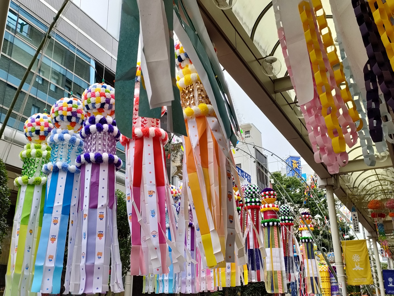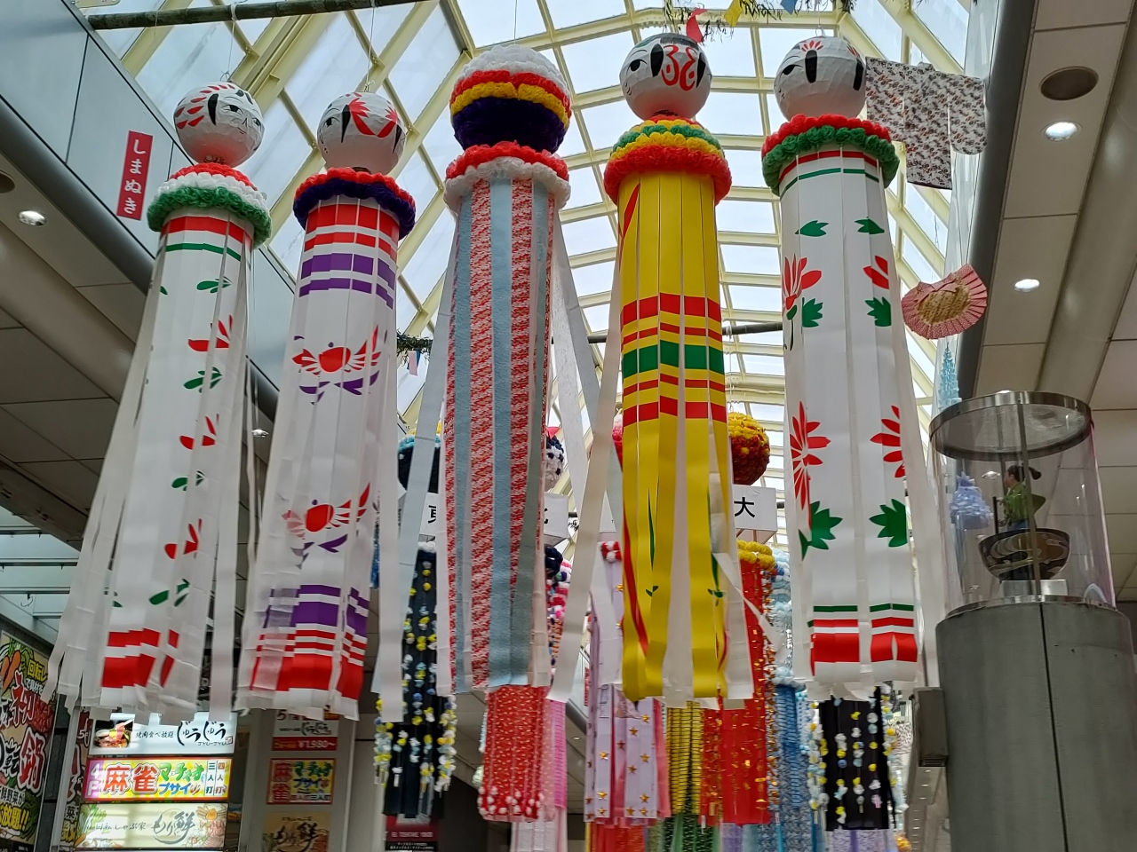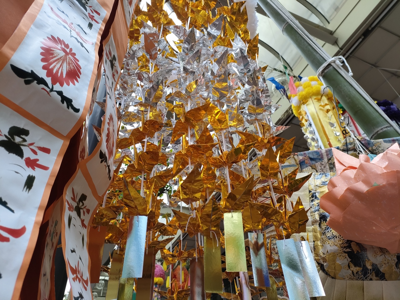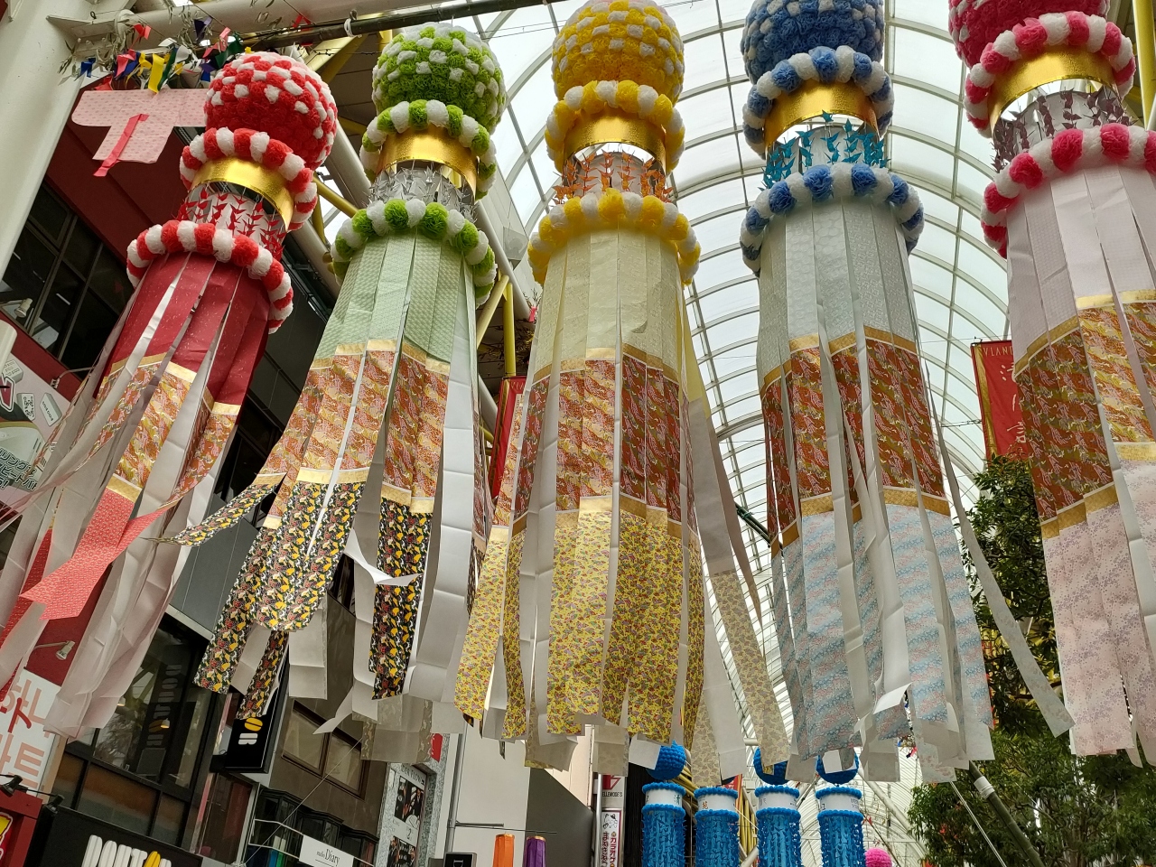 また、一番町四丁目はアーケード屋根が無く、竹飾りに斜めに下がる七夕飾りとなっているのが良かったです。