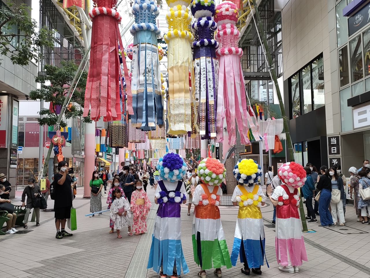 JR仙台駅近くの名掛町商店街から、クリスロード、マープルロードおおまちと伝って、一番町の各商店街の七夕飾りを順番に巡ることができます。