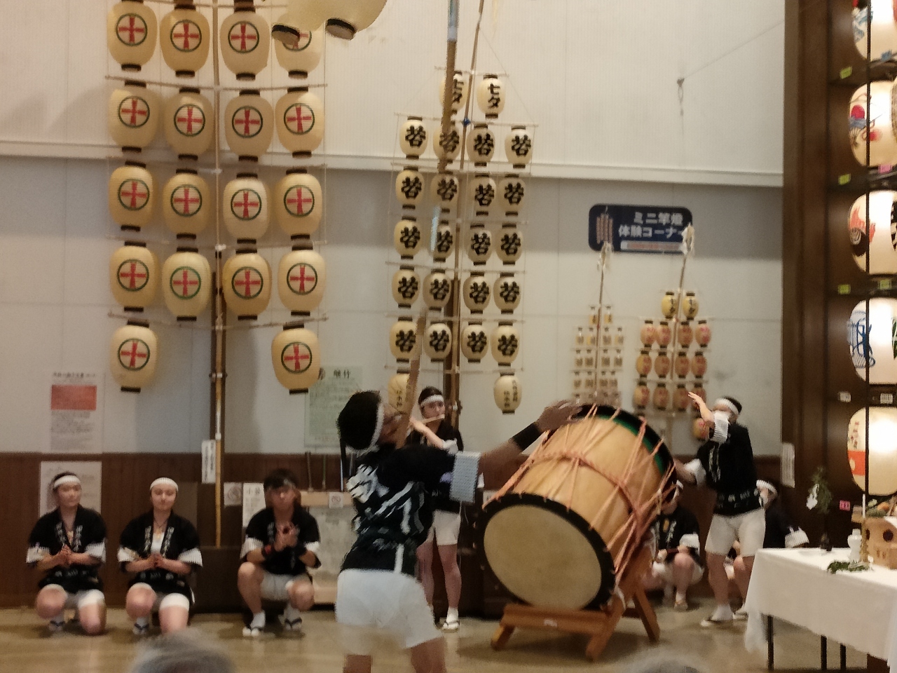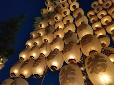 しかし、竿灯の様子は写真とかで見るのとは違って、まさに「百聞は一見に如かず」で、迫力の太鼓の打ち鳴らしの中、重さ50kgという竿灯を、腕、頭、そして腰へと置いて持ち上げる様子が目の前で眺められ、とても感動的でした。