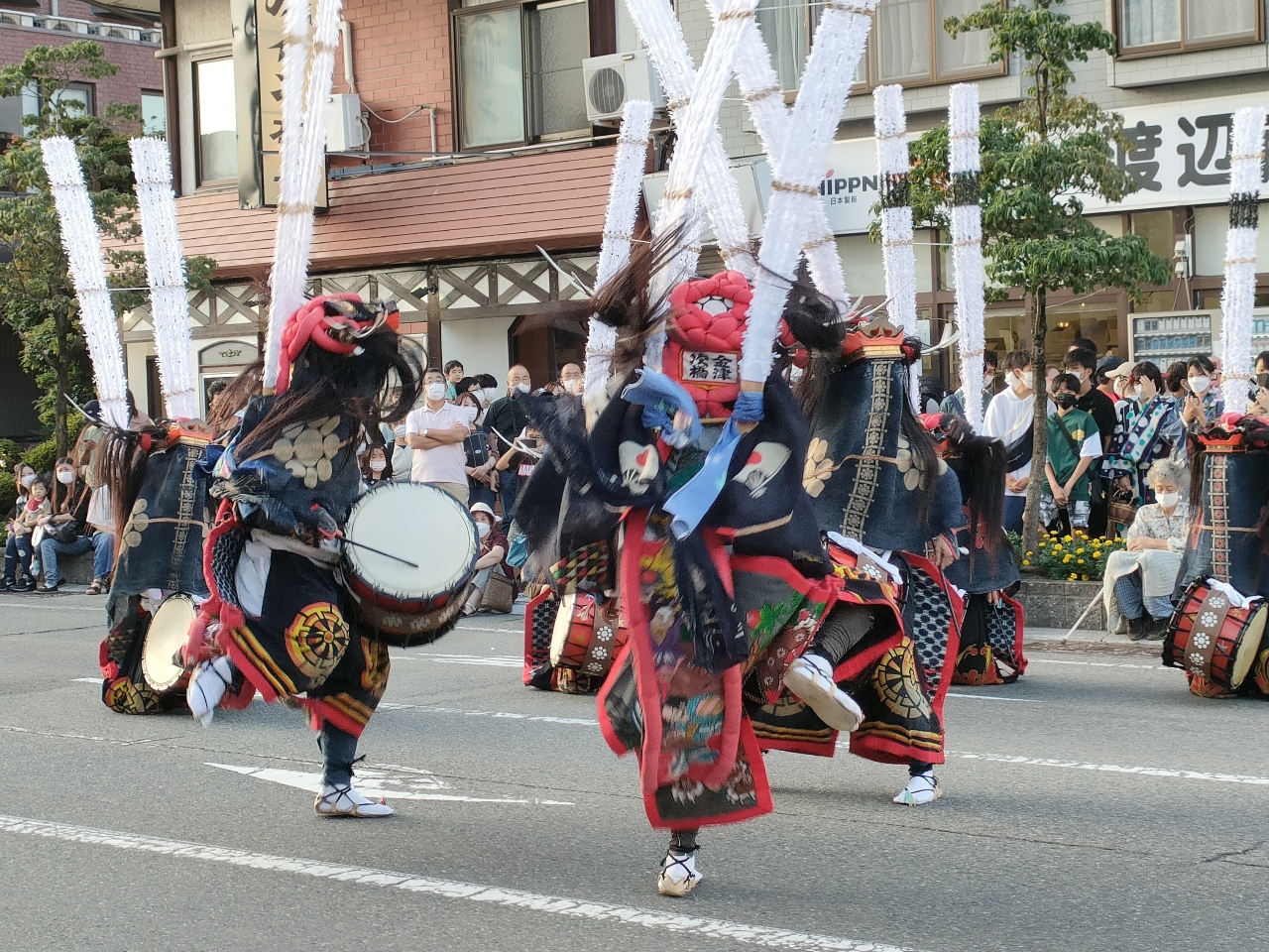 中でも鹿踊は迫力があり、鬼剣舞も道路一面に繰り出した大勢の舞手による勇壮な舞を楽しむことができました。