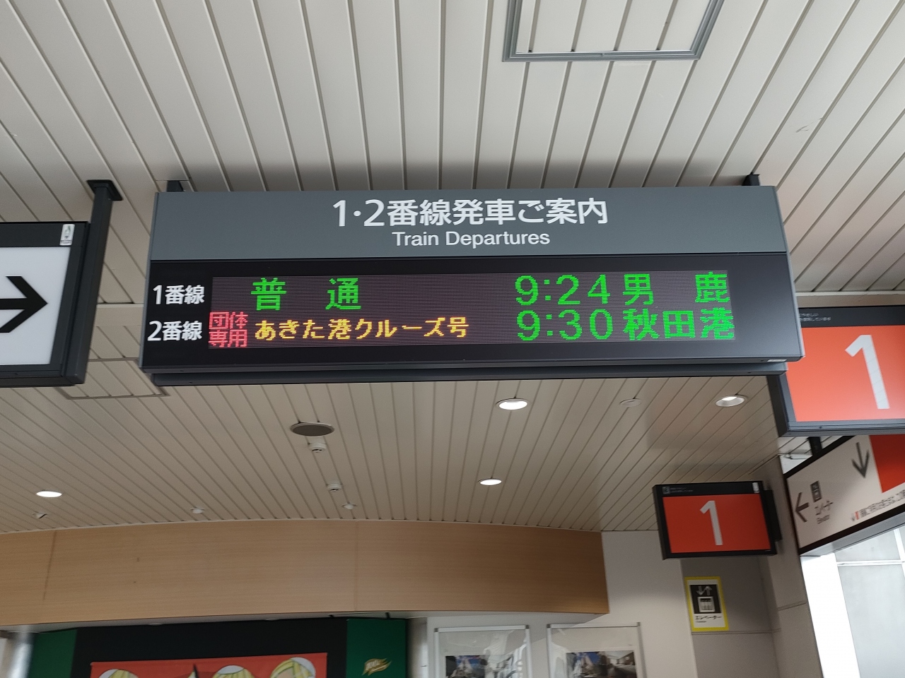 秋田駅から男鹿駅までは55分~1時間5分です。