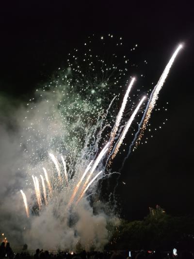 花火の打ち上がり方は、一定時間まとまって打ち上がった後、20~30秒の間隙を置いてから、再び打ち上がり、余計なコマーシャルや挨拶などは挟まれずに比較的連続して楽しめたと思います。