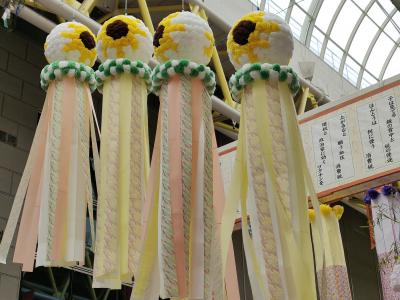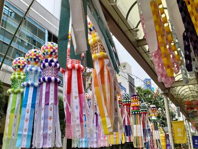 神奈川・平塚の七夕と比べると優しい色合いの飾りが多かったような気がします。