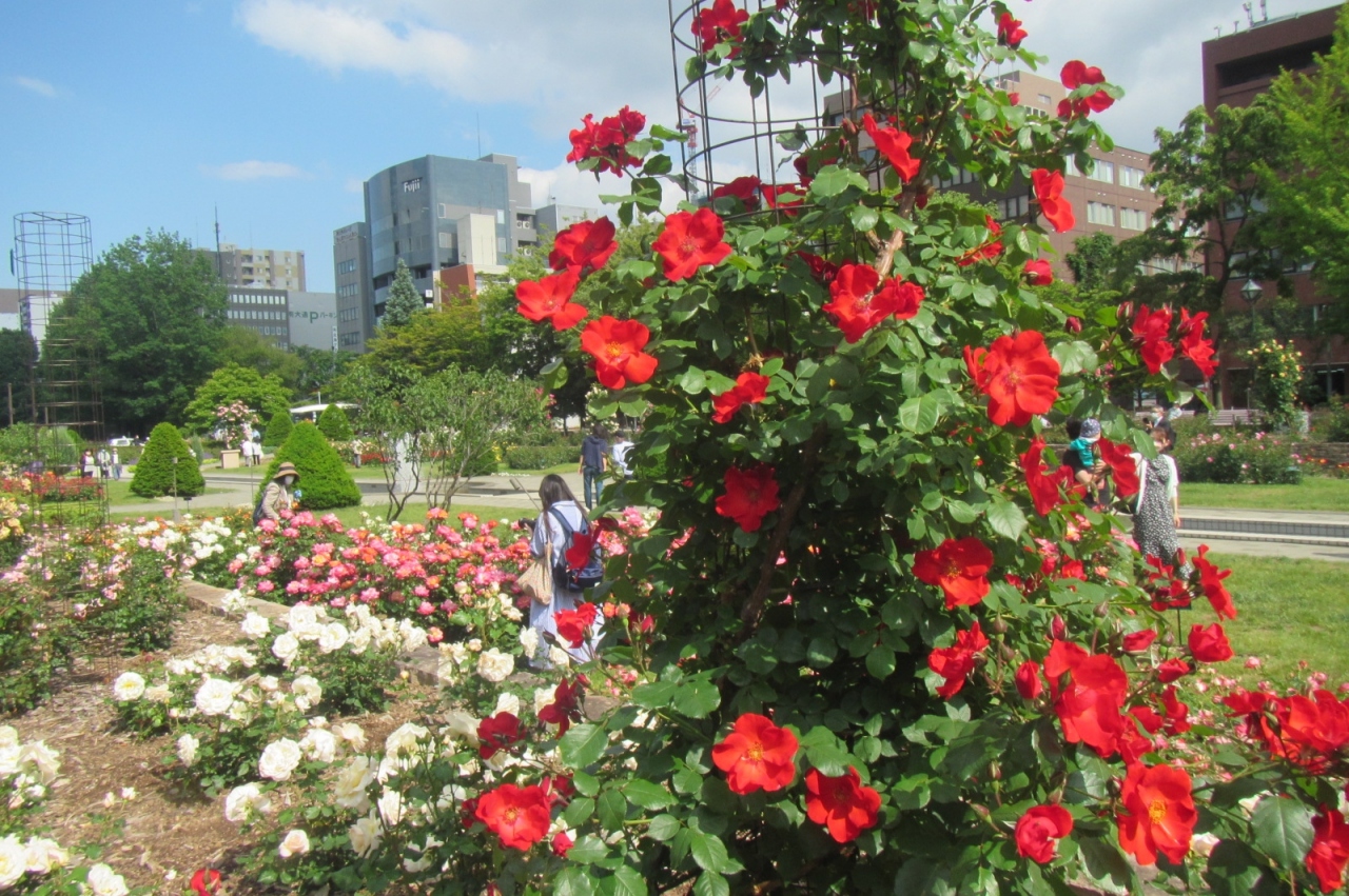 大通公園の西12丁目はバラ園になっていて、無料で園内のバラを鑑賞できます。