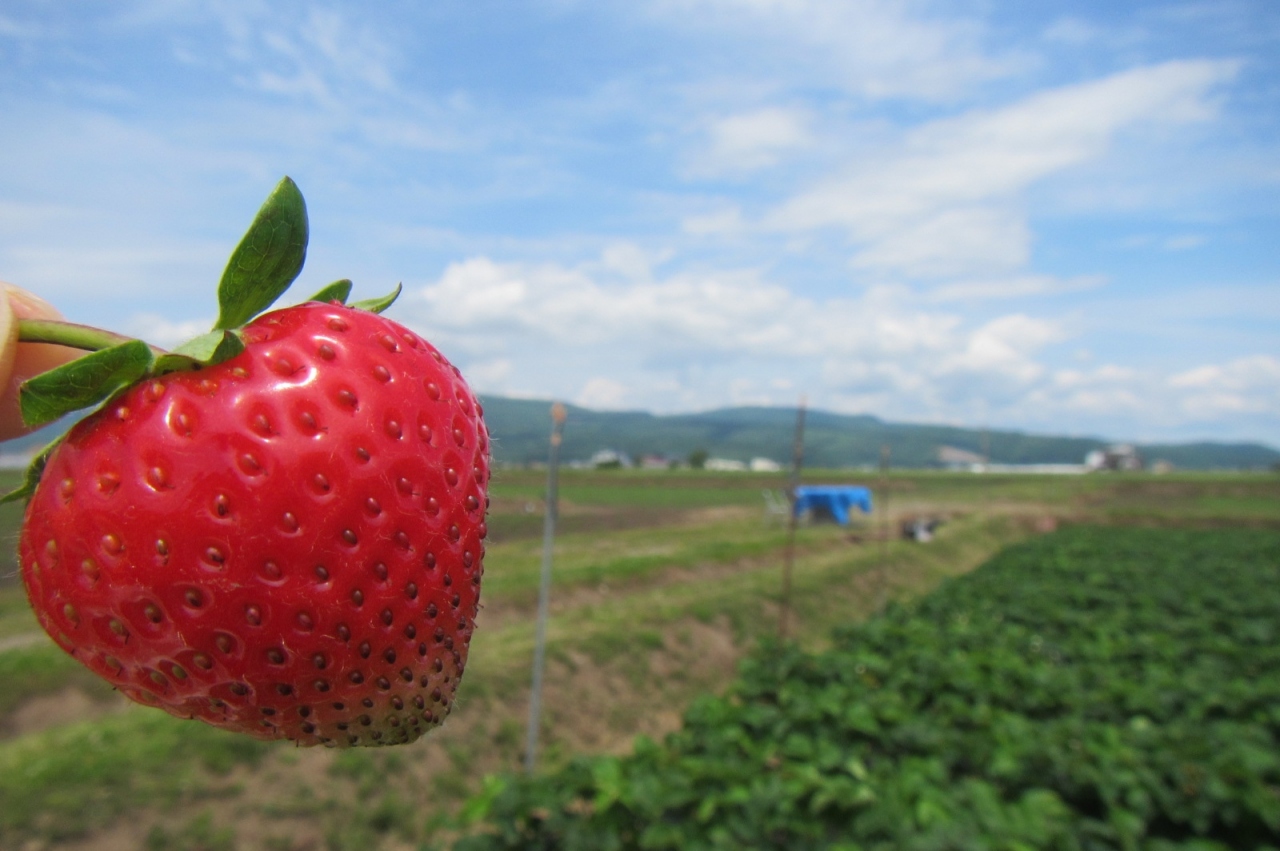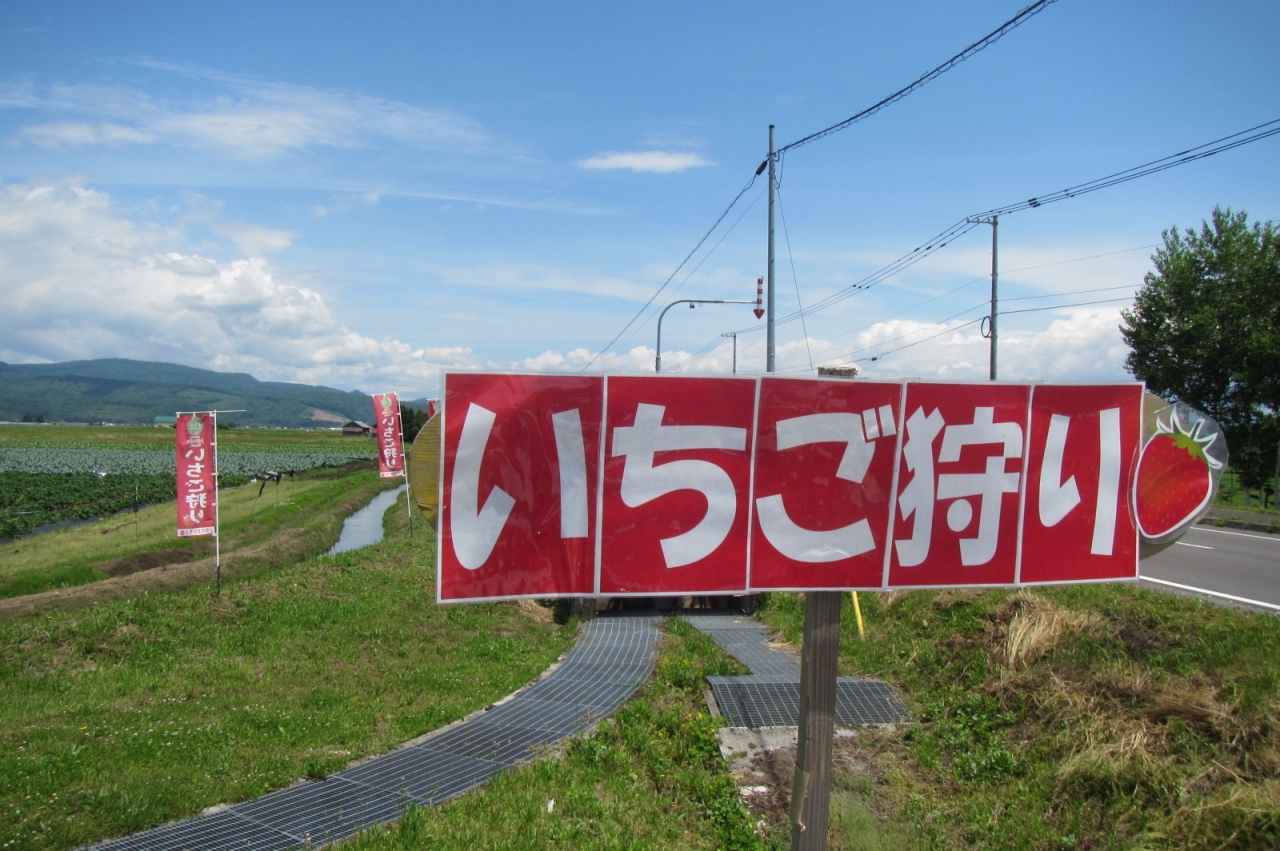 2022年のイチゴ狩りのチラシを見ていると、狩れるイチゴは3種類。”けんたろう”と”宝交”、”ゆきララ”とあり、ほとんどの農園が”けんたろう”ですが、2020年から本格的に比布での出荷が始まったという”ゆきララ”を扱っているのは、北川農園のみ。そこで今回は北川農園さんにおじゃましました(各農園の品種や広さ、収容人数などはホームページや旭川の観光案内所等でもらえるイチゴ狩りのチラシが参考になります)。