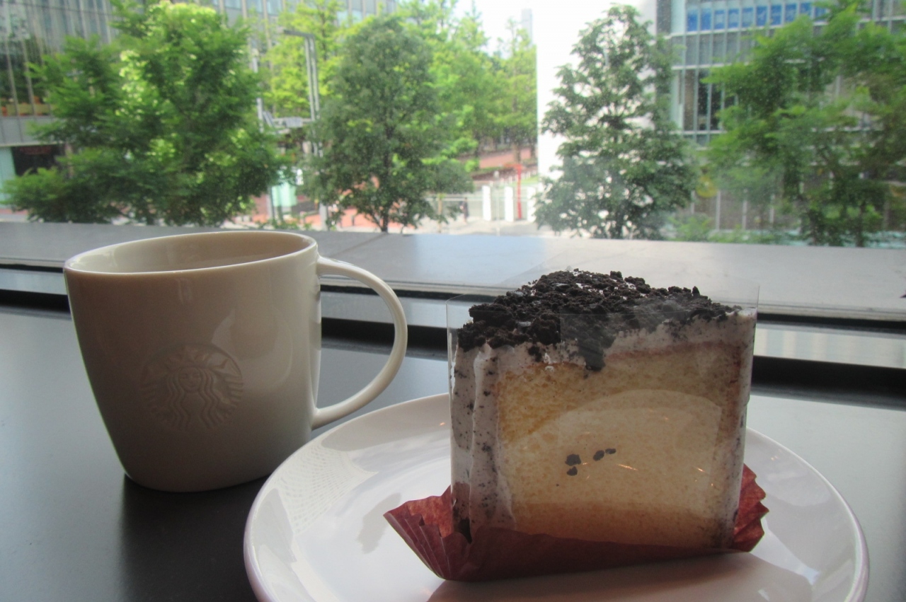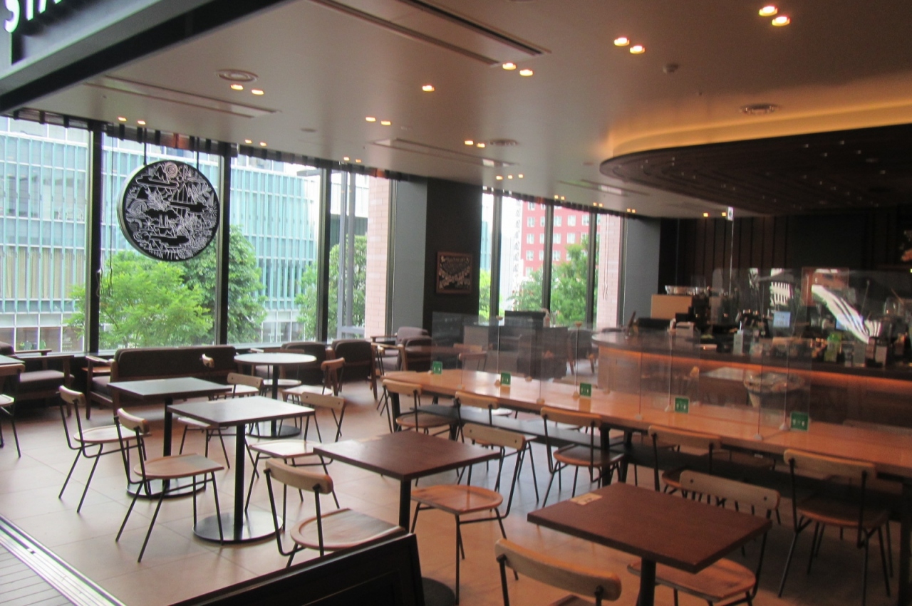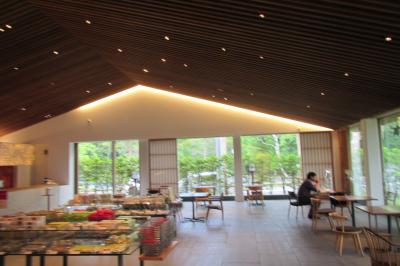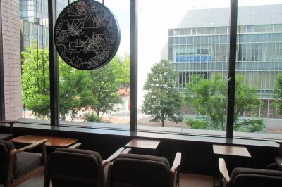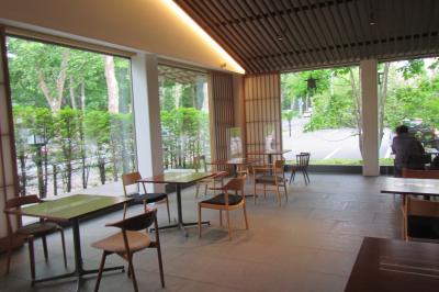 喫茶室(喫茶スペース)は、神楽岡店がプラタナス並木の神楽岡公園通りに面した緑の雰囲気なのに対し、豊岡店はお店の生垣の緑に面して、これも緑の景色です。