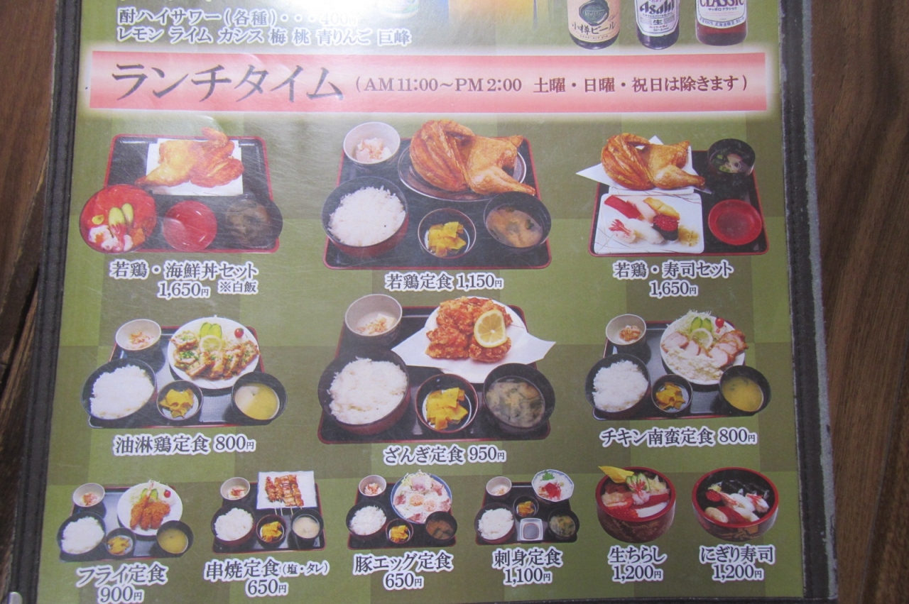 メニューは半身揚げを皮切りにザンギなど各種鳥料理がありますが、いずれもボリュームがあり、女性の場合は食べきれないこともあります。