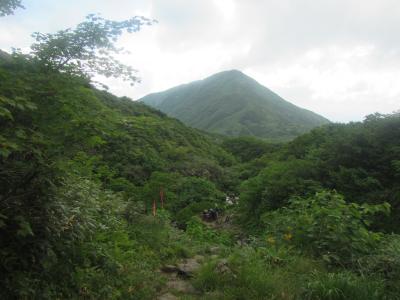 無雪期でも装束場辺りから見上げる湯殿山は登れそうな山容をしているのにネ…。