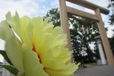 6月下旬に訪れたところ、社務所の前や境内にところどころシャクヤクが咲いていて、よくシャクヤクが植えられている神社だなと思いました。