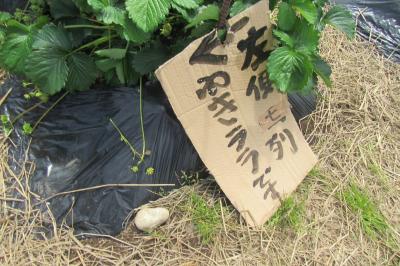 北川農園さんは、20~30m四方の一面のみの他より比較的小さな畑(露地)。狩れる時間は特に制限はなく、おおよそ1時間を目途にご協力をお願いしますとのことですが、1時間もいたらお腹がパンパンに膨れ上がり、とてもではありませんが1時間以上はいられません。また、イチゴ狩りには、結構、トイレが重要だったりしますが、トイレは入口のところに移動式の簡易トイレが1つある程度でした。なお、どの農園さんもトイレは同じようなものです。”ゆきララ”は、畑のかなりの広さで植えられていて、実がカブのようなぷっくりとした形状の大粒の実で、味は、熟れたものについては、普通のイチゴとは一味違う何か香料の香りが加わったような甘い味わいがしました。近くに植えられていた”けんたろう”の味と比べると、”けんたろう”の方は普通によく食べるイチゴらしい味わいで、クセのない爽やかな甘みでしたが、比べた場合、”ゆきララ”の方は大人の味という印象でした。