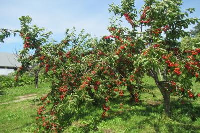 ・品種が数種類あり、佐藤錦?などもあって、大粒だったり、甘い実だったりする木も結構ある
