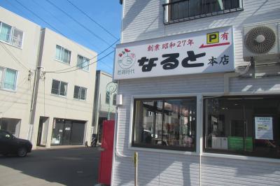 小樽を中心に札幌など周辺にもお店があり、札幌市内のスーパーでも時々、商品を見かけることがある半身揚げで有名な”なると”ですが、本店は、小樽駅を出て、都通りとは反対に梁川通りを少し北側に行った街中にあります。