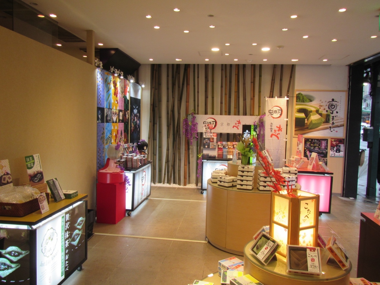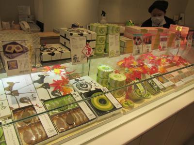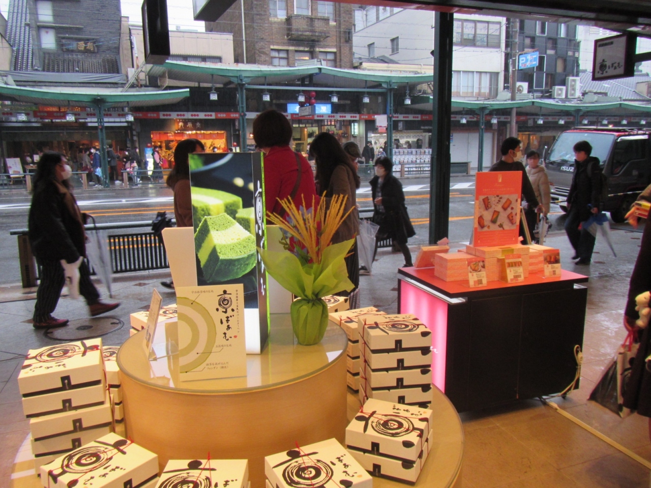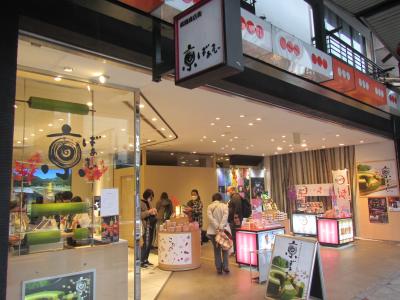 抹茶バウムクーヘンを製品や食べ歩き用の剥片などで売っているお店ですが、店内には他に生八つ橋などのお菓子も置かれていて、小さな箱に小分けされたこたべなどは、量・お値段ともに手ごろでちょうど良かったです。